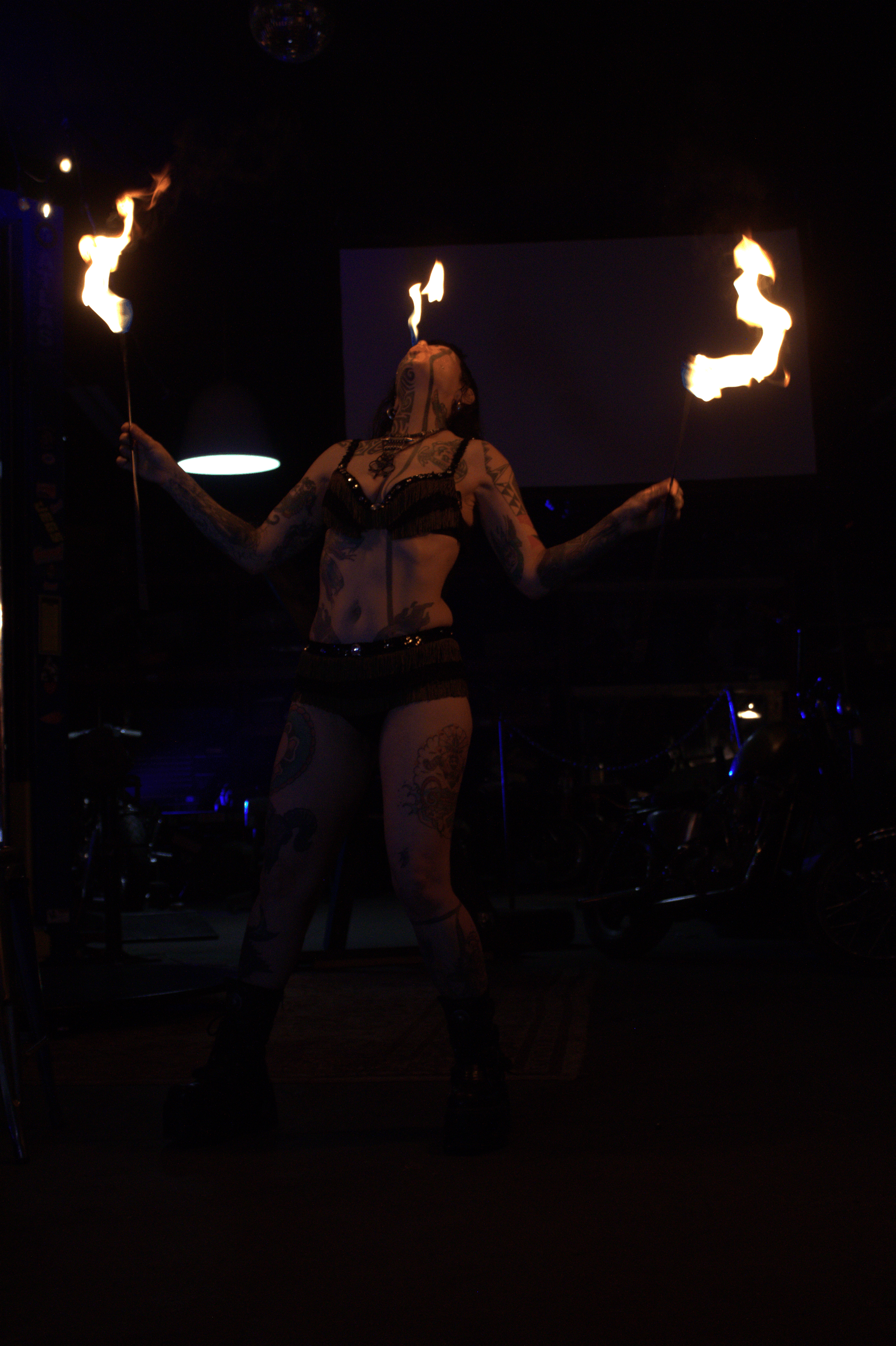 Insectavora is a renowned fire-eater, bug-eater, and sideshow performer best known for her long-standing tenure at the Coney Island Circus Sideshow. Known for performing death-defying stunts, she has been featured as a core cast member for many years, performing fire manipulation, eating worms, and showcasing a heavily tattooed, pierced look at the Coney Island USA venue