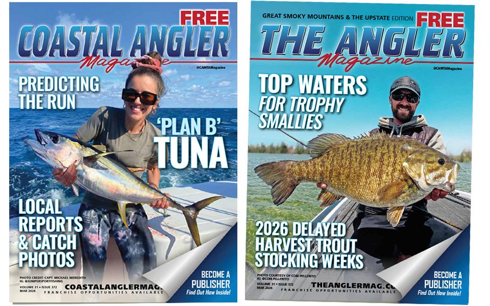 Coastal Angler Magazine and our interior (freshwater) publication, The Angler Magazine, are monthly editions dedicated to fishing, boating, and outdoor enthusiasts. With over 1 million print readers per month and the industry’s most expansive distribution network, we have emerged as one of the largest outdoor publications in the United States and abroad, thus solidifying our place as a preferred resource. You can pick up your area’s local edition at over 11,000 marine specific businesses, retail outlets or big box stores. Or, if you prefer digital, our magazines are also available as a free e-magazine on our website.